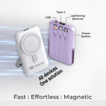Special Feature: Magnetic MagSafe Wireless Power Bank, Type C two way fast charging, Comes with 3 inbuilt cables