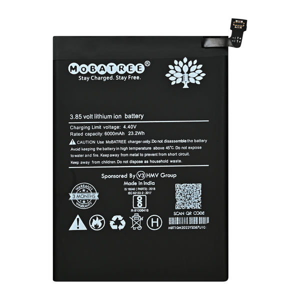 Brand : MOBATREE Compatible for: Redmi Mi 10 , Redmi10 Prime Model Number: BN63 Capacity: 6000 mAh Battery Cell Composition: Lithium Polymer Warranty Duration: 6 months MADE IN INDIA -Best...