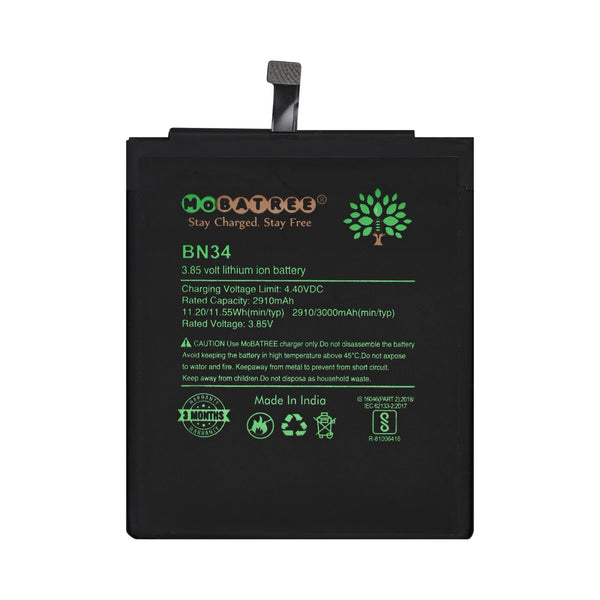 Mobatree Original Mobile Battery for Xiaomi Redmi 5A - BN34, 2910mAh (6 months Guarantee)